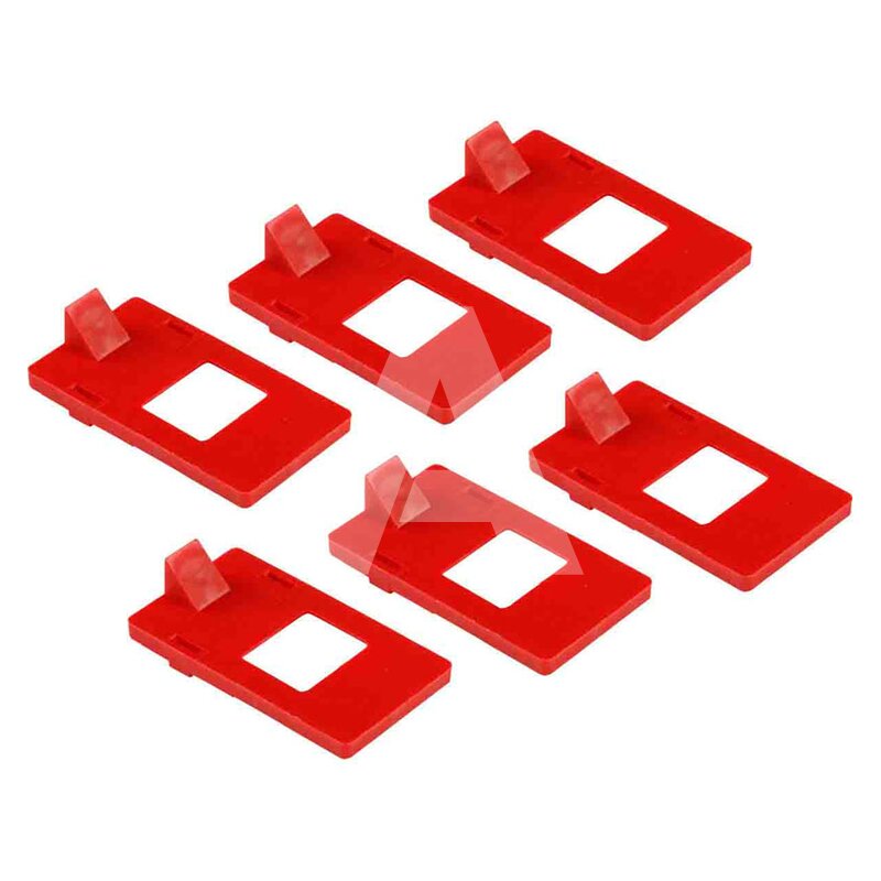 Gwarantują pewne unieruchomienie wyłączników z długimi, przesuwnymi końcówkami wyłączników. Nakładkę łatwo założyć u dołu zaciskowych blokad bezpieczników. Komplet zawiera 6 sztuk.