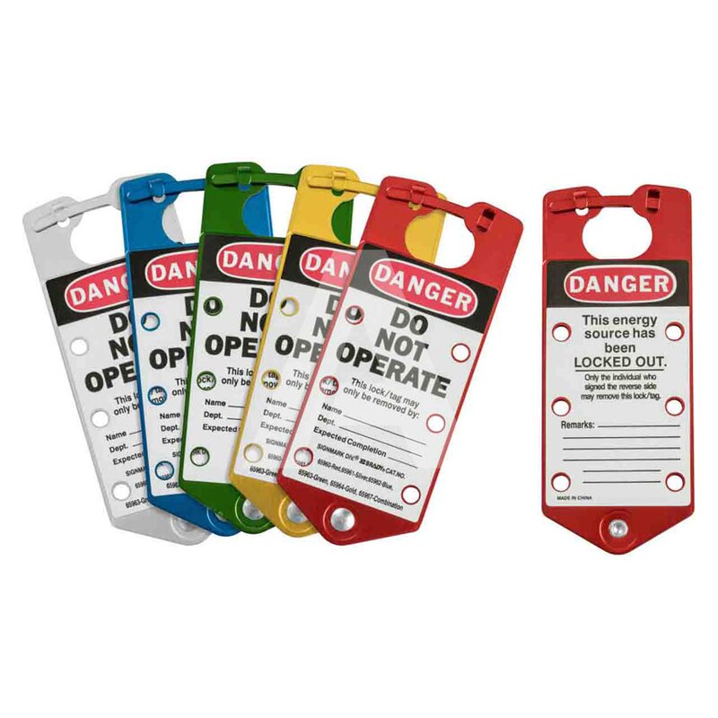 Grupowa blokada klamrowa LOTO z etykietą, wielokolorowa (5 szt.), 065967