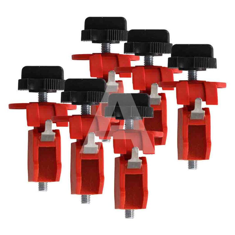 Blokada zapewnia bezpieczny i skuteczny sposób blokowania wyłączników instalacyjnych. Blokada łatwo instaluje się po naciśnięciu przycisku i nie wymaga użycia narzędzi. Blokada typu tie-bar ma wygodne pokrętło umożliwiające szybkie mocowanie. W komplecie jest 6 sztuk.