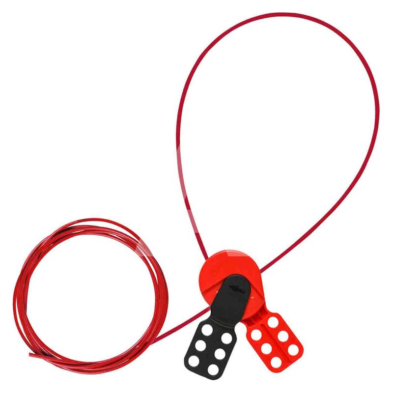 Kolor: czerwony/czarny, wymiary blokady: 63,5x127x22,23 mm, długość linki: 3 m, przeznaczona dla maksymalnie 6 kłódek.