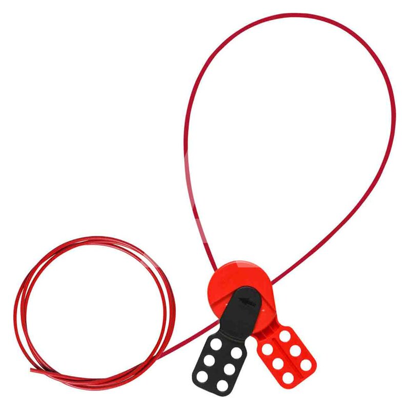 Kolor: czerwony/czarny, wymiary blokady: 63,5x127x22,23 mm, długość linki: 2 m, przeznaczona dla maksymalnie 6 kłódek.