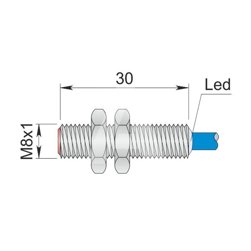 Czujnik indukcyjny, konstrukcja cylindryczna, materiał obudowy metal, kierunek detekcji osiowy.