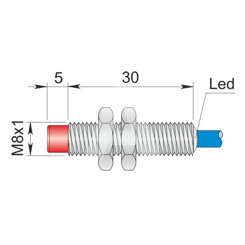 Czujnik indukcyjny, konstrukcja cylindryczna, materiał obudowy metal, kierunek detekcji osiowy.