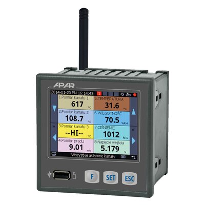 - okres pomiaru i aktualizacji programowalny z poziomu rejestratora AR40x od 1 min do 4 godz.