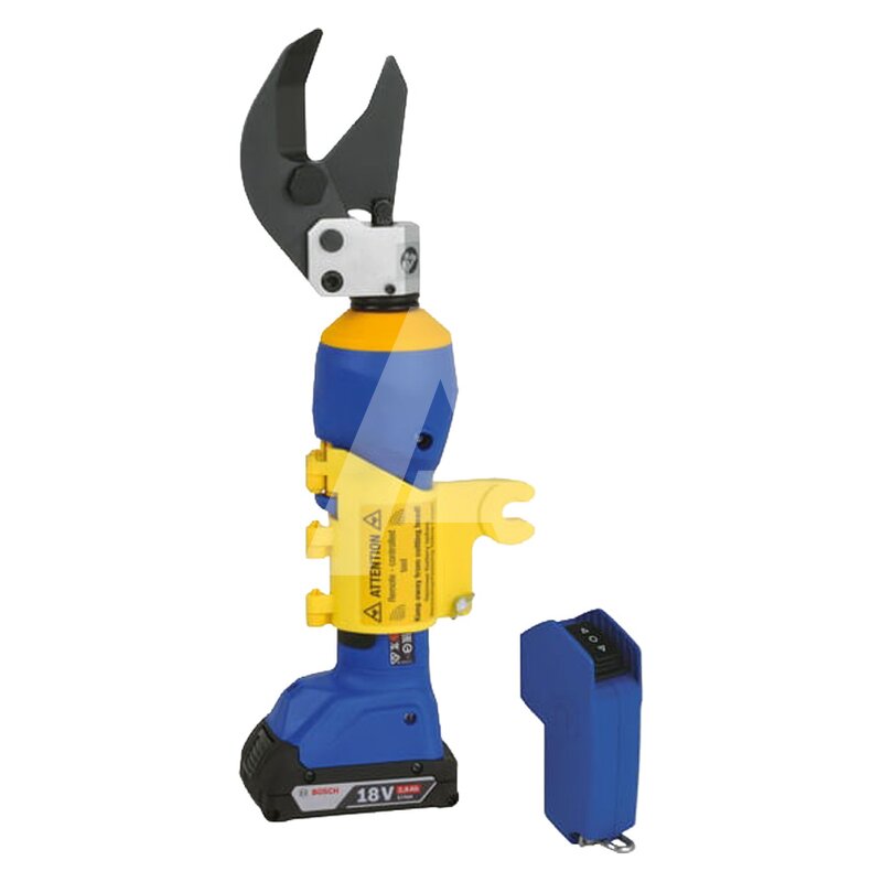Akumulatorowe nożyce hydrauliczne z pilotem, maksymalnie 32 mm średnicy, bateria Bosch. Otwarta, obrowa głowica ułatwia pracę w trudno dostępnych miejscach.Cechy: