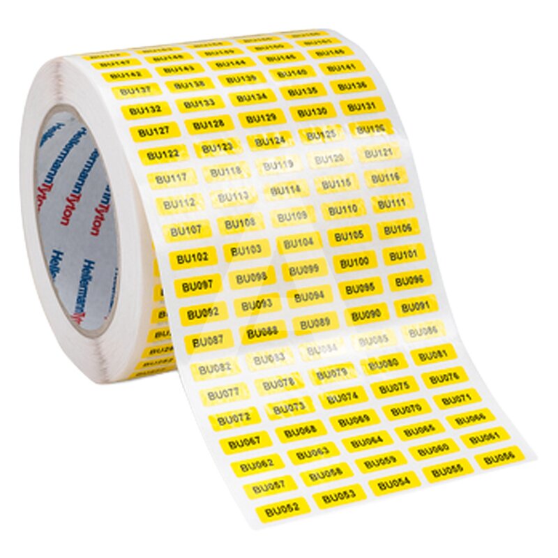 Idealne do znakowania paneli sterowniczych. Dobra widoczność etykiet, dzięki kontrastowi kolorów. Przeznaczone także do stosowania na trudnych powierzchniach. Zaokrąglone narożniki zapewniają lepszą przyczepność. Etykiety te przeznaczone są do trwałej identyfikacji komponentów i wstępnie zmontowanych urządzeń w przemyśle elektrycznym, jak również do identyfikacji środków trwałych. Aby uzyskać optymalne rezultaty druku, nadruki należy wykonywać za pomocą wysokiej jakości drukarek termotransferowych i taśm barwiących HellermannTyton. Można je również stosować przy naprawie i rozbudowie szaf sterowniczych i jednostek sterujących. Specjalny materiał gwarantuje najwyższą jakość druku termotransferowego. Ze względu na właściwości foli winylowej, etykiety te szczególnie nadają się do nierównych powierzchni.