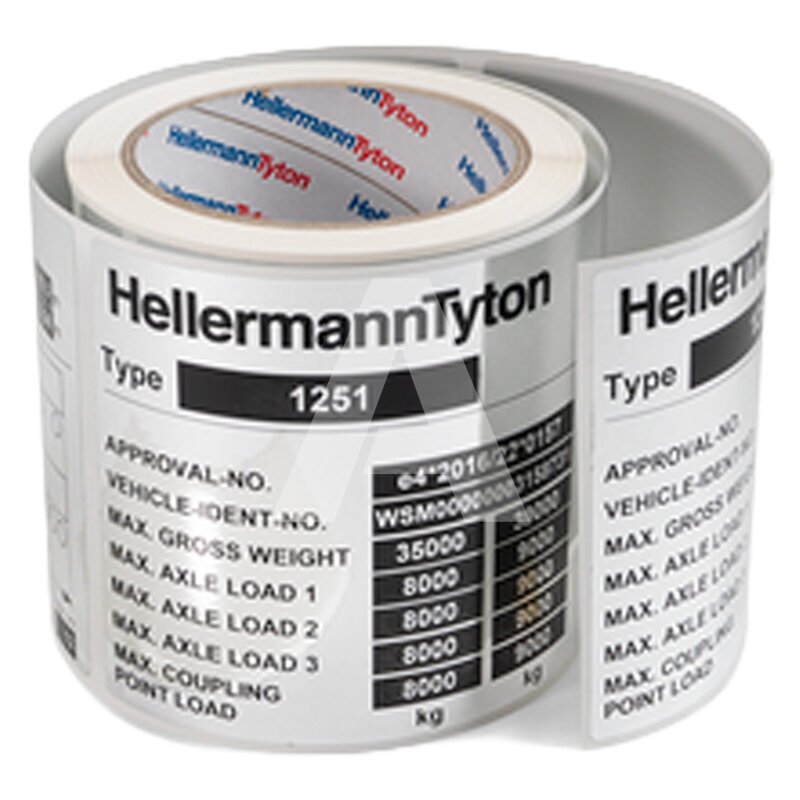 Etykiety dwuczęściowe, dostarczane w formie szpuli z oddzielnym laminatem zabezpieczającym. Zaprojektowane do oznaczania samochodów ciężarowych i przyczep. Zabezpieczone przed manipulacją. Po zerwaniu pozostawiają widoczny wzór szachownicy. Duża wytrzymałość na działanie warunków zewnętrznych. Zgodność z wymaganiami KBA (niemieckiego Federalnego Urzędu ds. Transportu Samochodowego). Sprawdzają się znakomicie jako tabliczki znamionowe pojazdów. Specjalny materiał gwarantuje najwyższą jakość druku termotransferowego. Dostępne materiały i taśmy barwiące spełnią potrzeby większości użytkowników. Projektowanie i drukowanie etykiet jest niezwykle proste. Dzięki oprogramowaniu TagPrint Pro przygotowanie i wydrukowanie profesjonalnej etykiety zajmuje tylko kilka chwil.