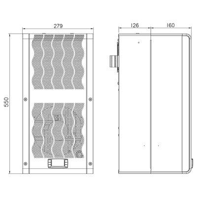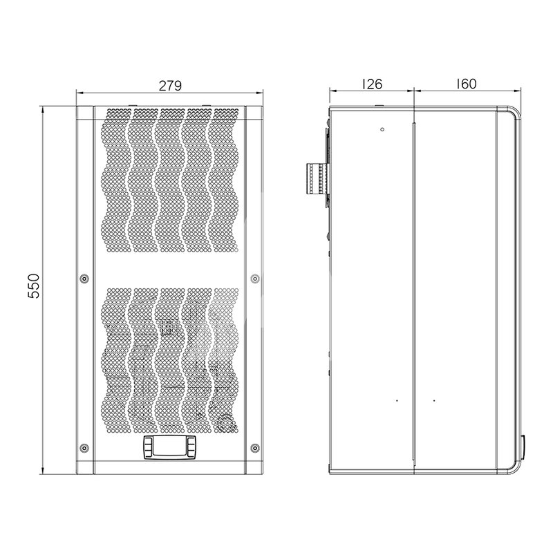 Urządzenie o zwartej konstrukcji, maksymalnej wydajności, niezawodności i wytrzymałości. Klimatyzator jest wyposażony mikrokanałowy skraplacz, co sprawia, że zmniejszają się spadki ciśnienia powietrza i poprawia się jego przepływ. Takie działanie zmniejsza pobór mocy. Posiada stopień ochrony IP54, chroni to przed wnikaniem pryskającej wody i pyłu pomiędzy klimatyzator a obudowę. Dla bardziej wymagających zastosowań istnieje możliwość zwiększenia stopnia ochrony do IP55. Klimatyzator przeznaczony do montażu wewnątrz budynku. Ponadto, dzięki zarządzaniu wentylatorem parownika przez sterowanie elektroniczne XCB, możliwe jest osiągnięcie znacznej redukcji zużycia energii elektrycznej.