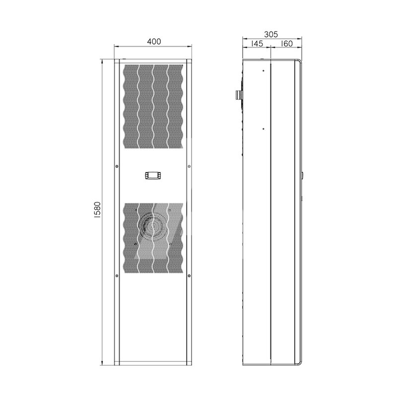 Urządzenie o zwartej konstrukcji, maksymalnej wydajności, niezawodności i wytrzymałości. Klimatyzator jest wyposażony mikrokanałowy skraplacz, co sprawia, że zmniejszają się spadki ciśnienia powietrza i poprawia się jego przepływ. Takie działanie zmniejsza pobór mocy. Posiada stopień ochrony IP54, chroni to przed wnikaniem pryskającej wody i pyłu pomiędzy klimatyzator a obudowę. Dla bardziej wymagających zastosowań istnieje możliwość zwiększenia stopnia ochrony do IP55. Klimatyzator przeznaczony do montażu wewnątrz budynku. Ponadto, dzięki zarządzaniu wentylatorem parownika przez sterowanie elektroniczne XCB, możliwe jest osiągnięcie znacznej redukcji zużycia energii elektrycznej.