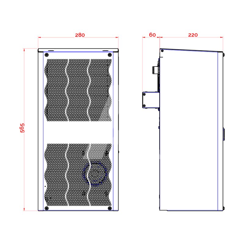 Urządzenie o zwartej konstrukcji, maksymalnej wydajności, niezawodności i wytrzymałości. Klimatyzator jest wyposażony mikrokanałowy skraplacz, co sprawia, że zmniejszają się spadki ciśnienia powietrza i poprawia się jego przepływ. Takie działanie zmniejsza pobór mocy. Posiada stopień ochrony IP54, chroni to przed wnikaniem pryskającej wody i pyłu pomiędzy klimatyzator a obudowę. Dla bardziej wymagających zastosowań istnieje możliwość zwiększenia stopnia ochrony do IP55. Klimatyzator przeznaczony do montażu na zewnątrz budynku. Ponadto, dzięki zarządzaniu wentylatorem parownika przez sterowanie elektroniczne XCB, możliwe jest osiągnięcie znacznej redukcji zużycia energii elektrycznej. Kompaktowe wymiary sprawiają, że mieści się w obudowach o głębokości 300 mm i wysokości 600 mm, ma też wysoki współczynnik wydajności. Dla klimatyzatorów zewnętrznych dostępne jest opcjonalne wyposażenie w grzałkę o mocy 600 W.