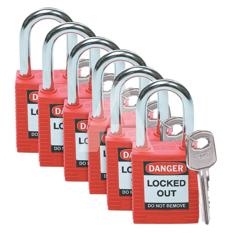 Kłódka bezpieczeństwa LOTO, nylonowa, szekla 38 mm, czerwona (6 szt.), 051339