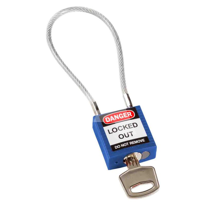 Kłódka bezpieczeństwa LOTO z linką (200 mm), niebieska, 146122