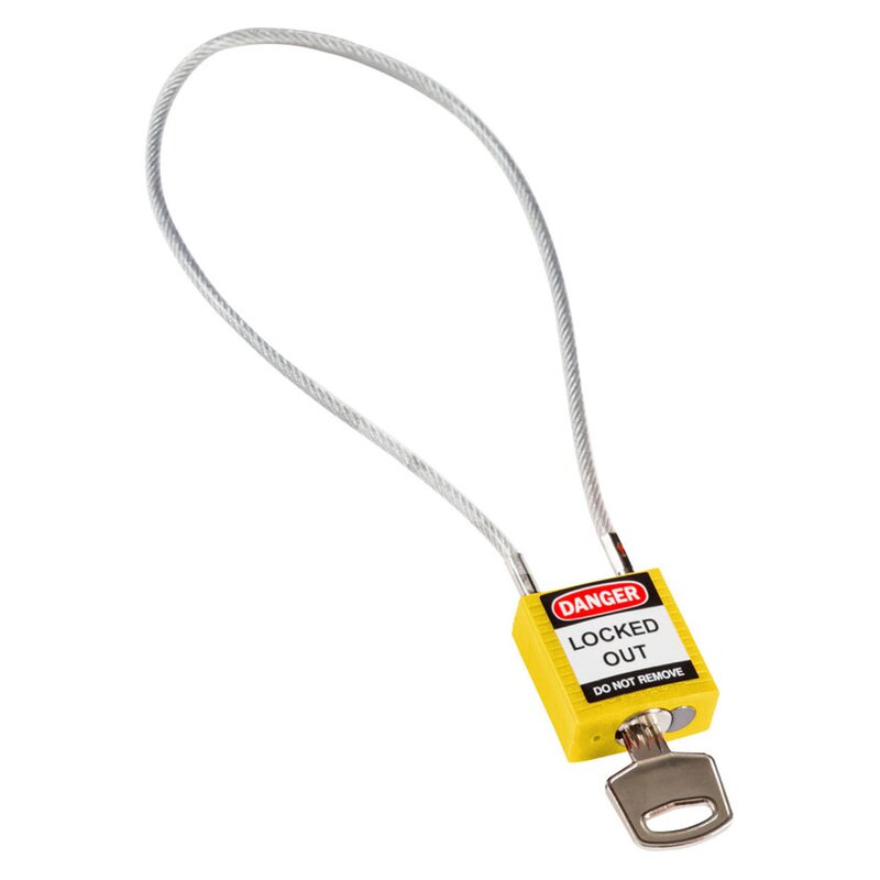 Kłódka bezpieczeństwa LOTO z linką (400 mm), żółta, 146125
