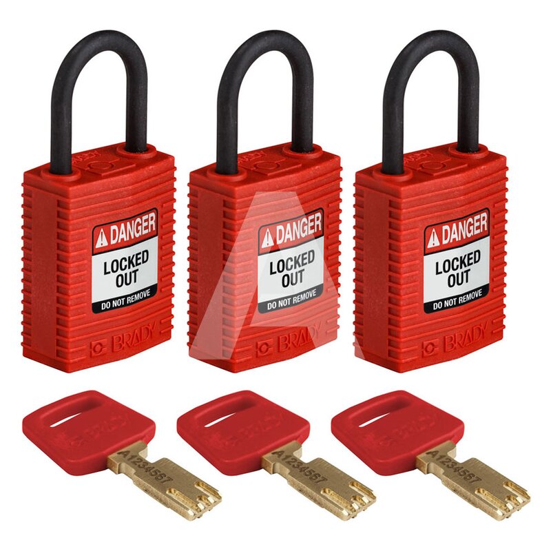 Kłódka LOTO SafeKey kompaktowa, nylonowa, szekla 25 mm, czerwona (3 szt.), 150189
