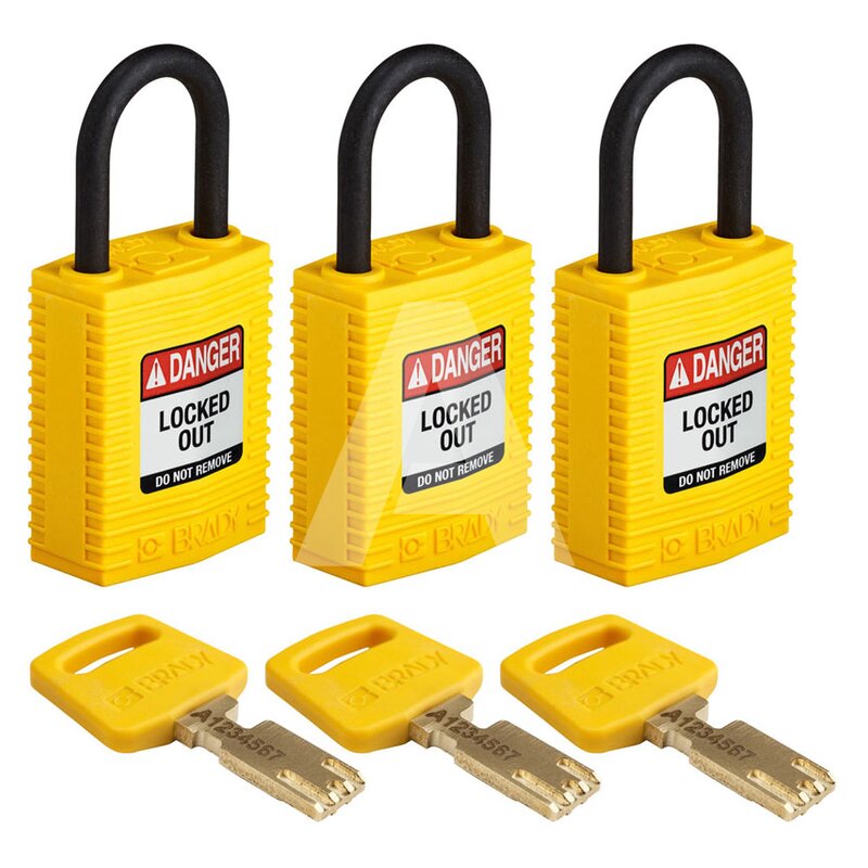 Kłódka LOTO SafeKey kompaktowa, nylonowa, szekla 25 mm, żółta (3 szt.), 150190