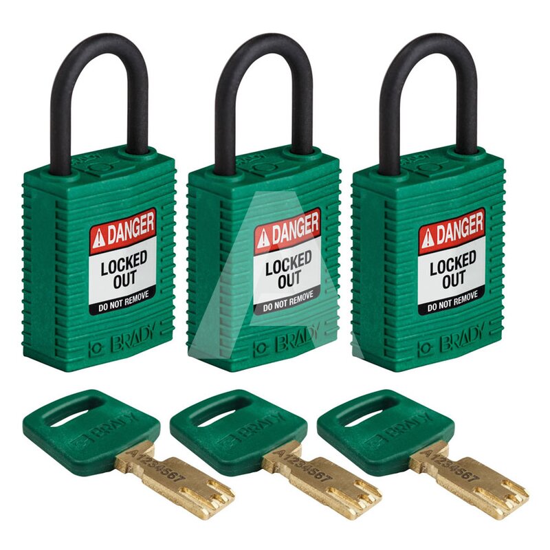 Kłódka LOTO SafeKey kompaktowa, nylonowa, szekla 25 mm, zielona (3 szt.), 150191