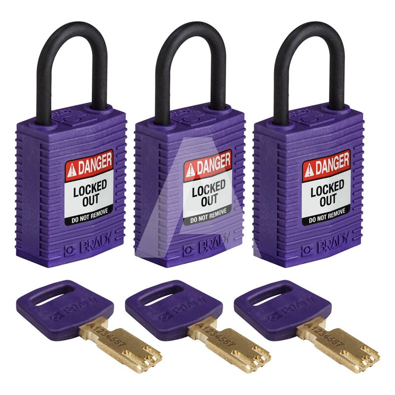 Kłódka LOTO SafeKey kompaktowa, nylonowa, szekla 25 mm, fioletowa (3 szt.), 150195