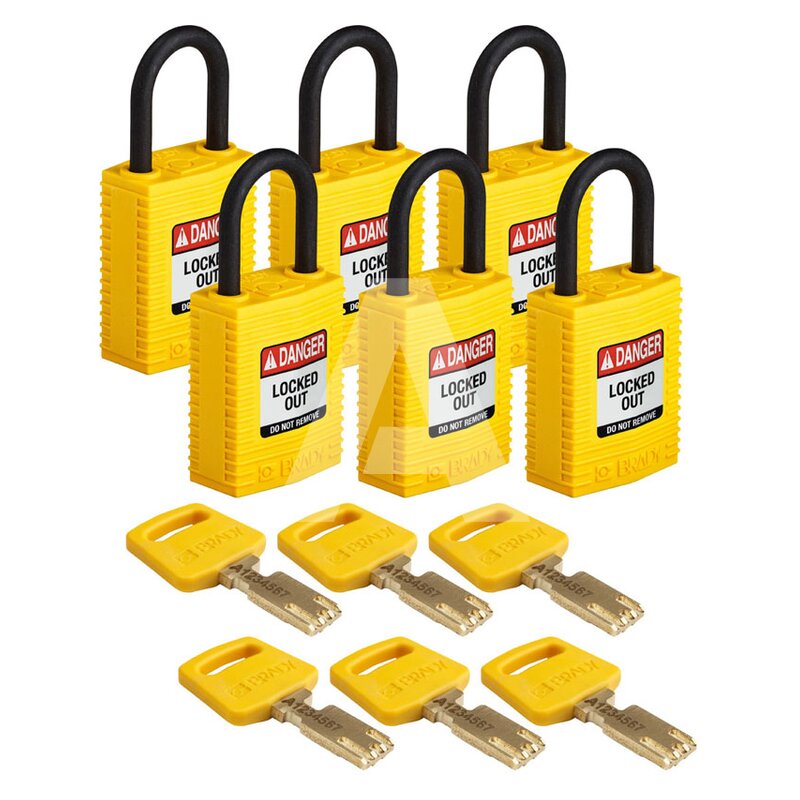 Kłódka LOTO SafeKey kompaktowa, nylonowa, szekla 25 mm, żółta (6 szt.), 150208