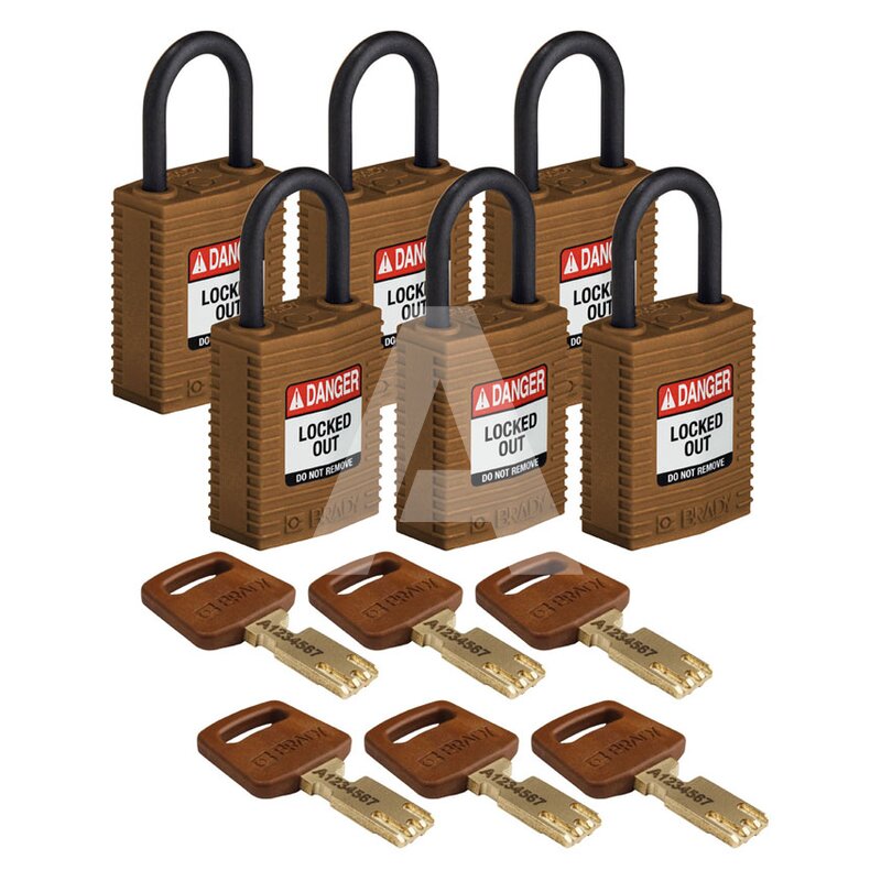 Kłódka LOTO SafeKey kompaktowa, nylonowa, szekla 25 mm, brązowa (6 szt.), 150214