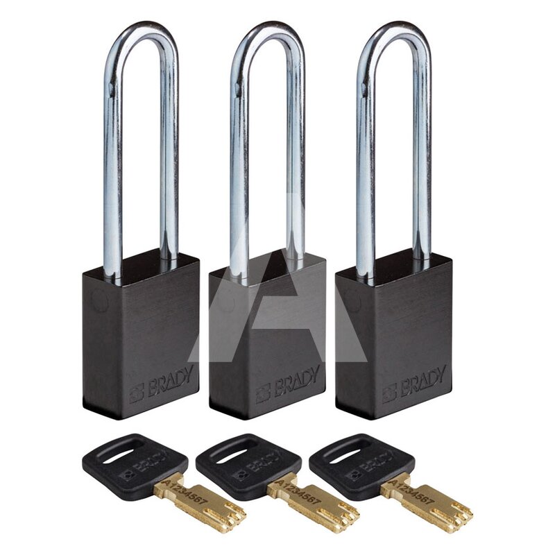Kłódka bezpieczeństwa LOTO SafeKey, aluminiowa, szekla 76 mm, czarna (3 szt.), 150217