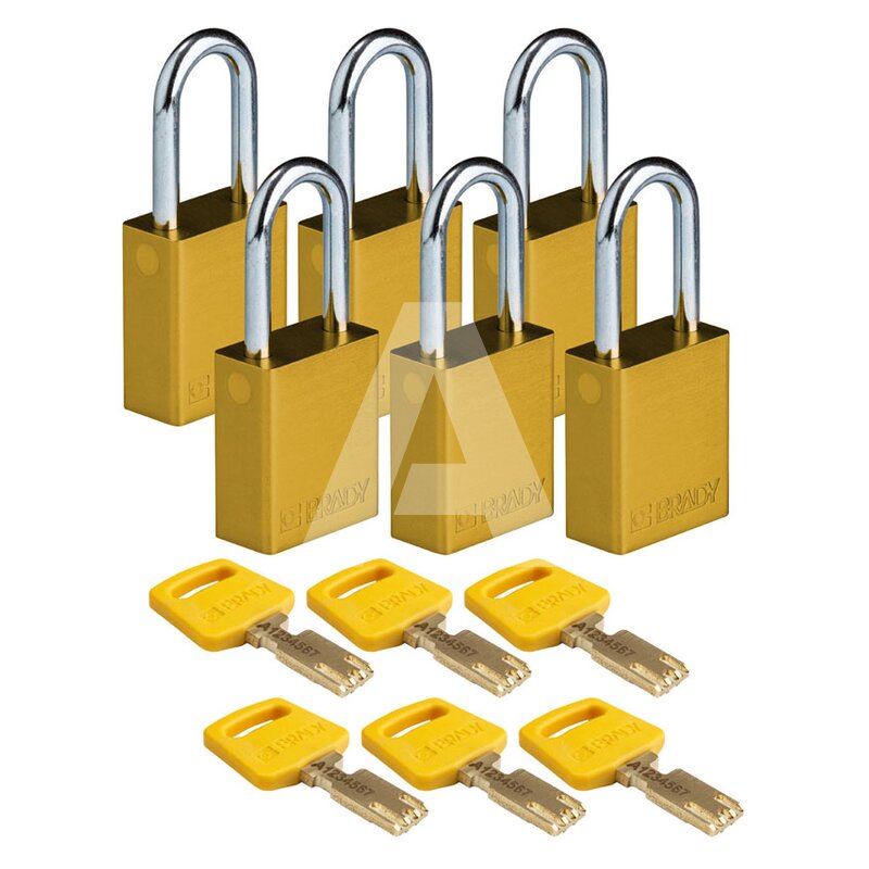 Kłódka bezpieczeństwa LOTO SafeKey, aluminiowa, szekla 38 mm, żółta (6 szt.), 150219