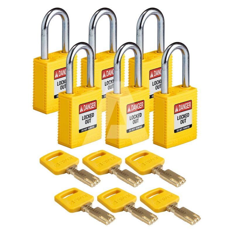 Kłódka LOTO SafeKey nylonowa, szekla stalowa 38 mm, żółta (6 szt.), 150225