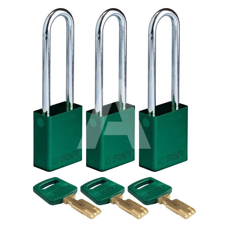 Kłódka bezpieczeństwa LOTO SafeKey, aluminiowa, szekla 76 mm, zielona (3 szt.), 150238