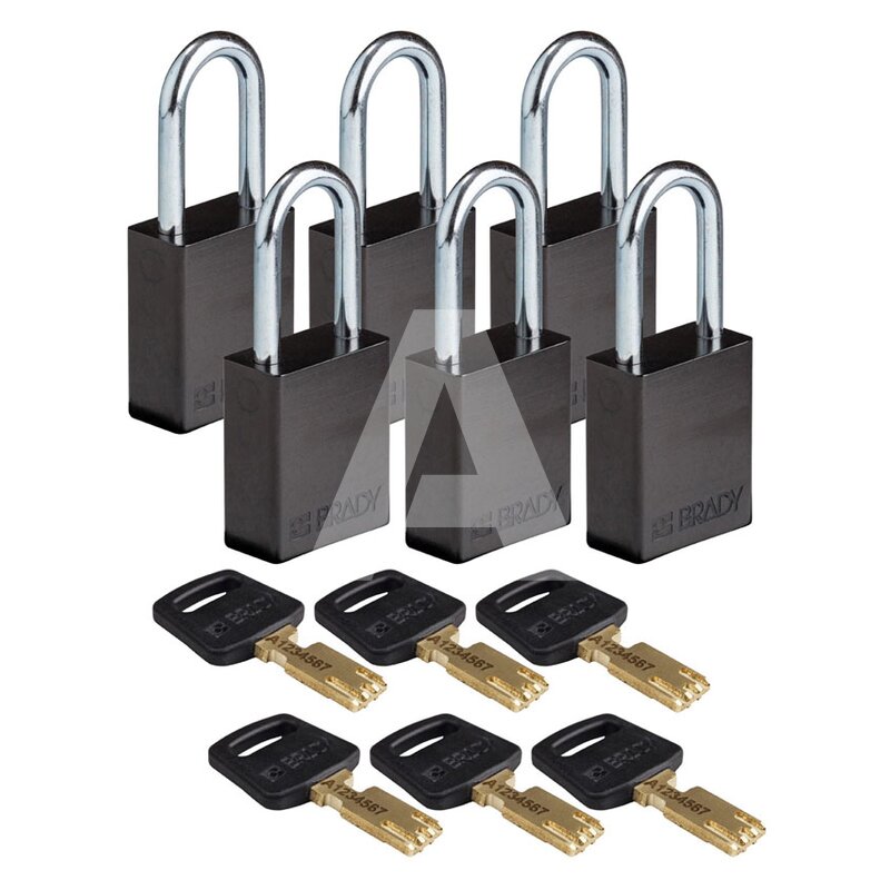 Kłódka bezpieczeństwa LOTO SafeKey, aluminiowa, szekla 38 mm, czarna (6 szt.), 150240