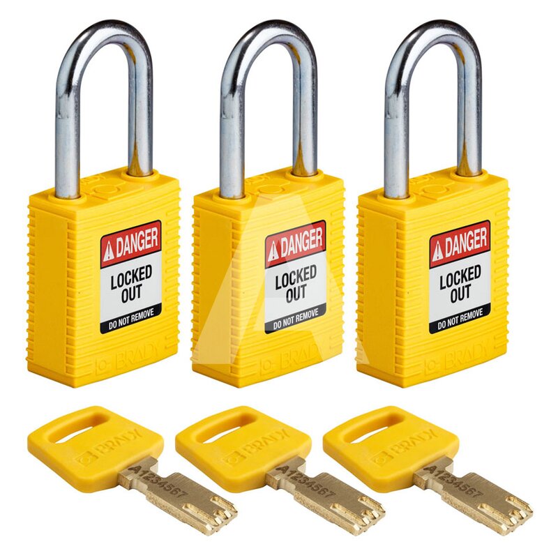 Kłódka LOTO SafeKey nylonowa, szekla stalowa 38 mm, żółta (3 szt.), 150246
