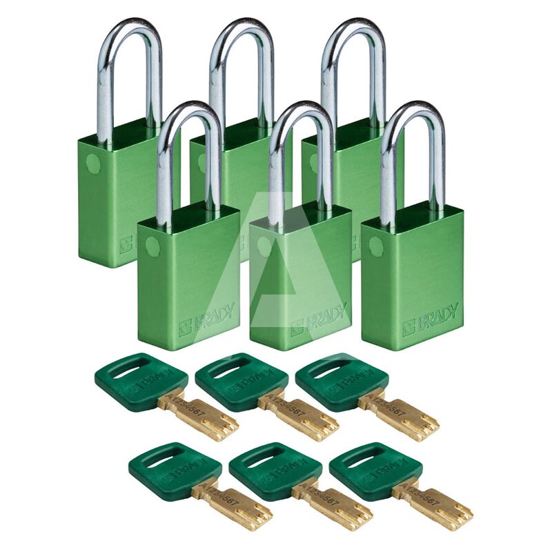 Kłódka bezpieczeństwa LOTO SafeKey, aluminiowa, szekla 38 mm, zielona (6 szt.), 150256