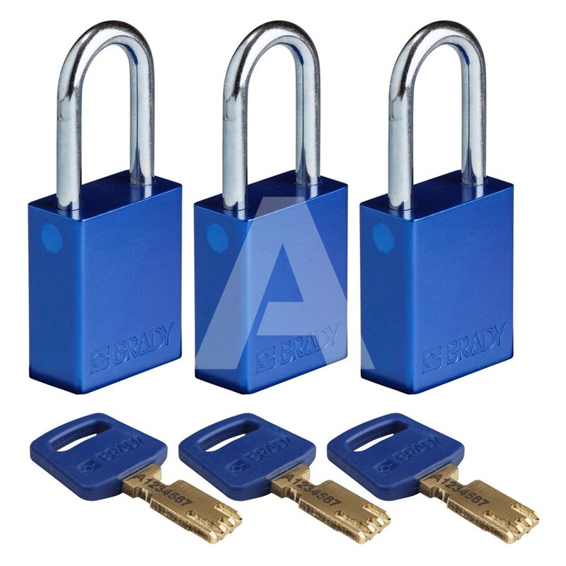 Kłódka bezpieczeństwa LOTO SafeKey, aluminiowa, szekla 38 mm, niebieska (3 szt.), 150261