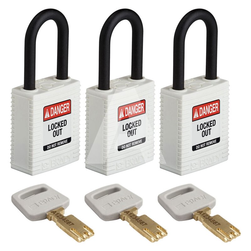 Kłódka LOTO SafeKey nylonowa, szekla 38 mm, biała (3 szt.), 150267