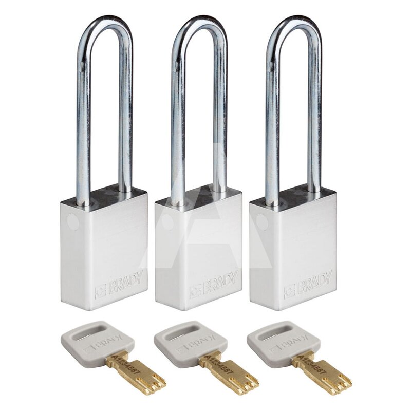 Kłódka bezpieczeństwa LOTO SafeKey, aluminiowa, szekla 76 mm, srebrna (3 szt.), 150276