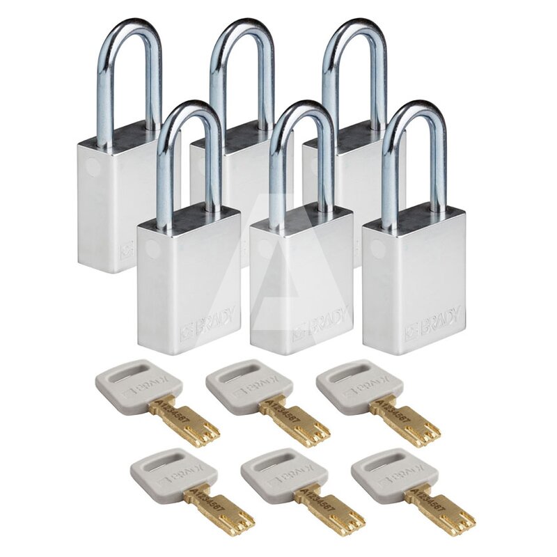 Kłódka bezpieczeństwa LOTO SafeKey, aluminiowa, szekla 38 mm, srebrna (6 szt.), 150278