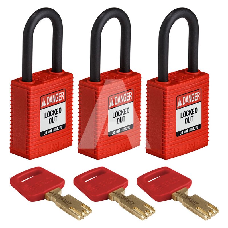 Kłódka LOTO SafeKey nylonowa, szekla 38 mm, czerwona (3 szt.), 150291