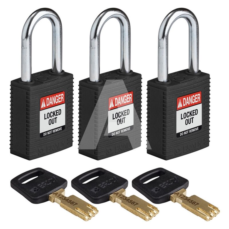 Kłódka LOTO SafeKey nylonowa, szekla stalowa 38 mm, czarna (3 szt.), 150294