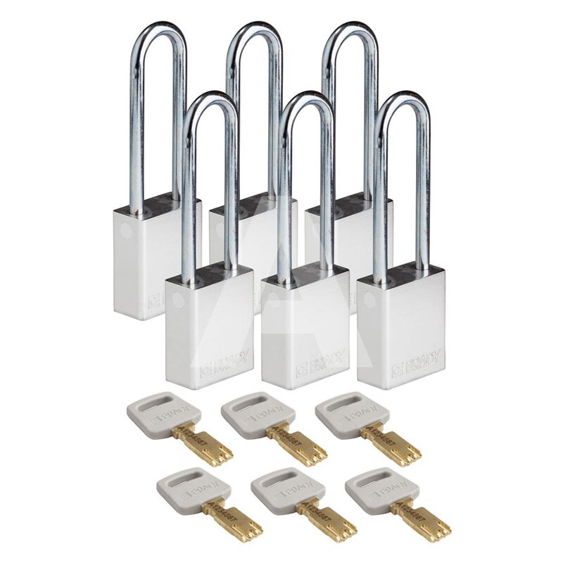 Kłódka bezpieczeństwa LOTO SafeKey, aluminiowa, szekla 76 mm, srebrna (6 szt.), 150297