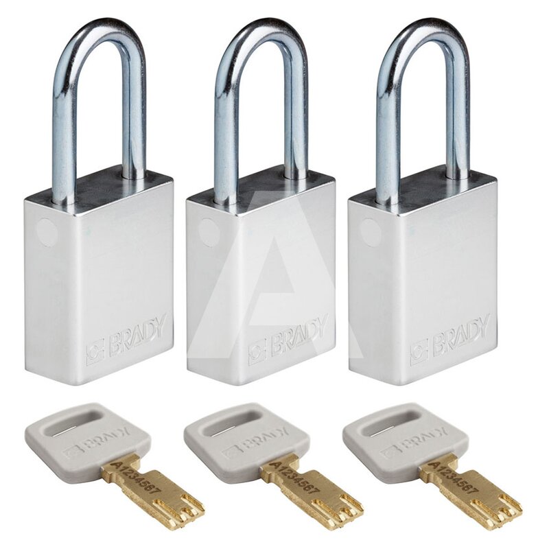 Kłódka bezpieczeństwa LOTO SafeKey, aluminiowa, szekla 38 mm, srebrna (3 szt.), 150304