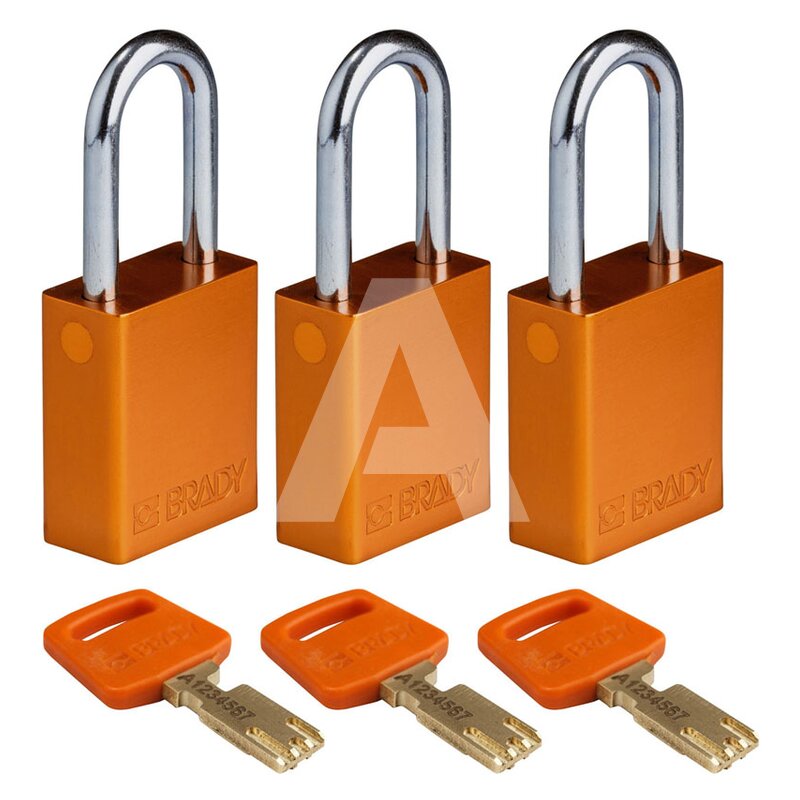 Kłódka bezpieczeństwa LOTO SafeKey, aluminiowa, szekla 38 mm, pomarańczowa (3 szt.), 150305