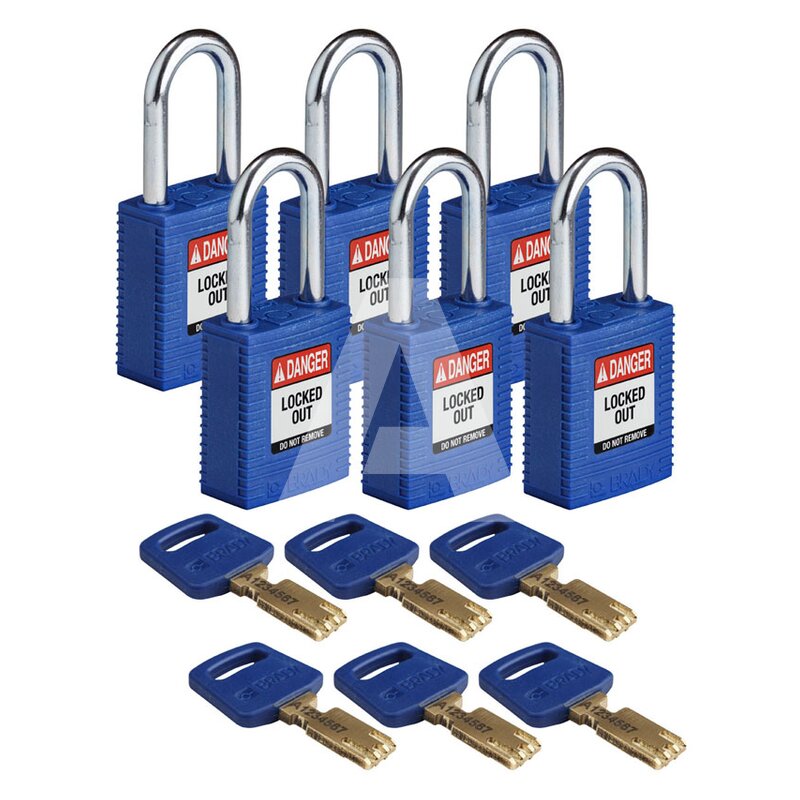Kłódka LOTO SafeKey nylonowa, szekla stalowa 38 mm, niebieska (6 szt.), 150316