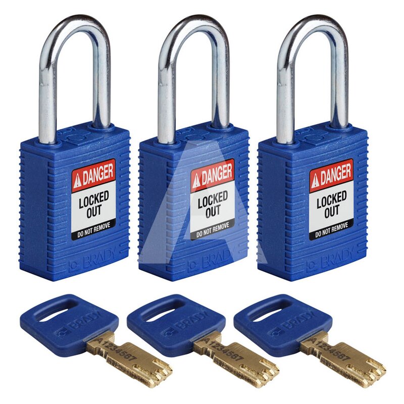 Kłódka LOTO SafeKey nylonowa, szekla stalowa 38 mm, niebieska (3 szt.), 150317
