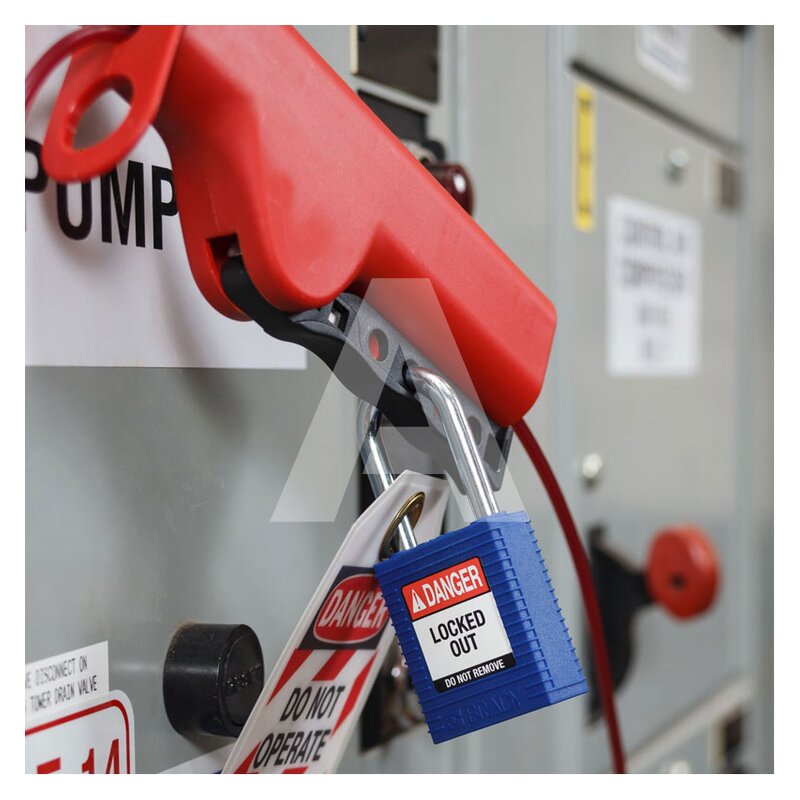 - Mechanizm kłódki jest izolowany i nieprzewodzący, aby chronić pracowników przed porażeniem po włożeniu klucza