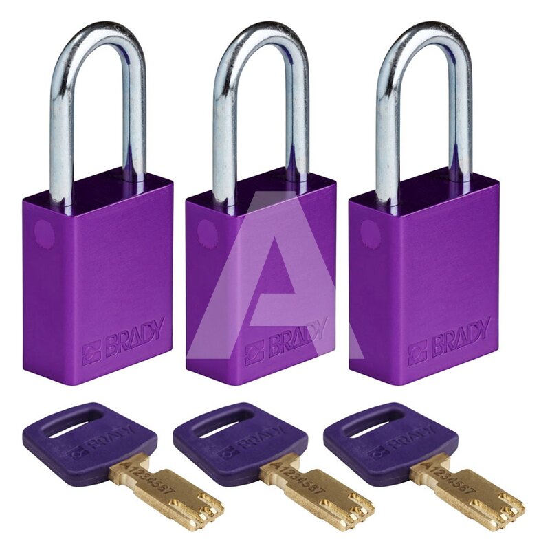 Kłódka bezpieczeństwa LOTO SafeKey, aluminiowa, szekla 38 mm, fioletowa (3 szt.), 150348