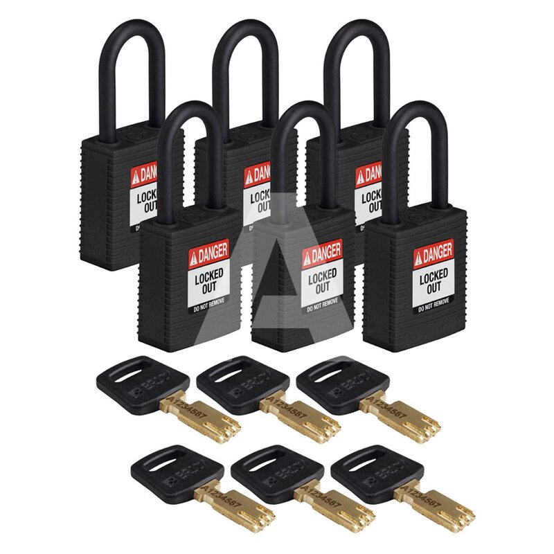 Kłódka LOTO SafeKey nylonowa, szekla 38 mm, czarna (6 szt.), 150351