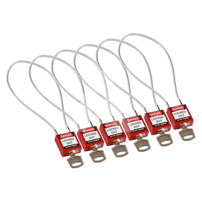 Kłódka bezpieczeństwa LOTO z linką (400 mm), czerwona (6 szt.), 195976