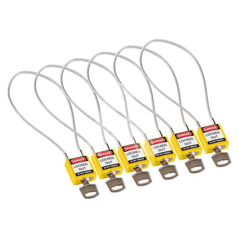 Kłódka bezpieczeństwa LOTO z linką (400 mm), żółta (6 szt.), 195977