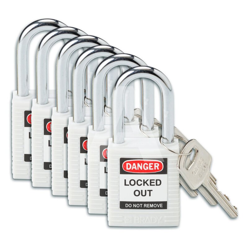 Kłódka bezpieczeństwa LOTO, nylonowa, szakla 38 mm, biała (6 szt.), 813638