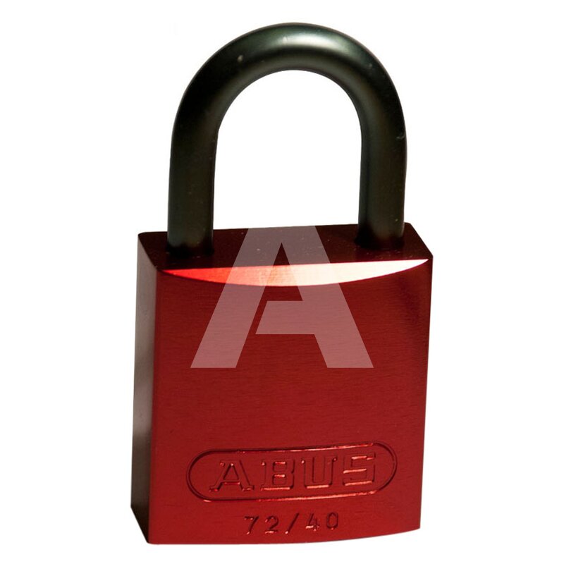 Materiał obudowy i szekli: aluminium, kolor: czerwony, zamykana na klucz, wysokość szekli: 25 mm.