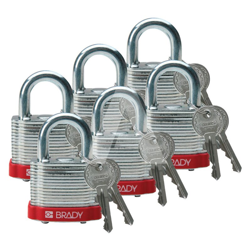 Kłódka LOTO stalowa, laminowana, szekla 20 mm, czerwona (6 szt.), 814088