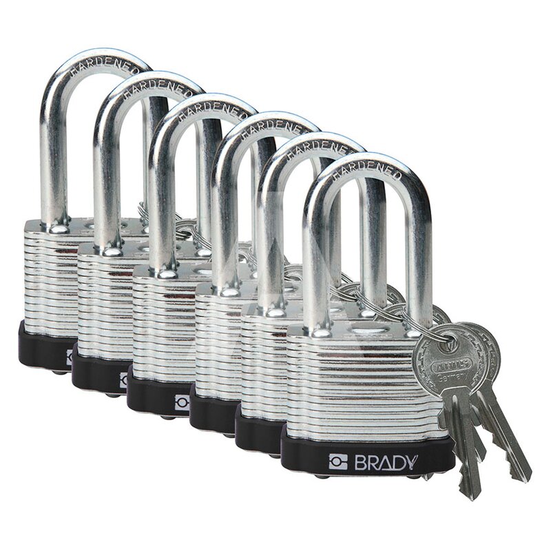 Kłódki stalowe są pokryte laminatem, co dodatkowo uodparnia je na uszkodzenia, trudniej też jest przeciąć szeklę z hartowanej stali. Mechanizm kłódki jest tak zbudowany, że daje możliwość dużej liczby niepowtarzalnych kluczy, co zabezpiecza przed modyfikacją zamka. Etykiety do kłódek dostępne osobno. Komplet zawiera 6 kłódek.